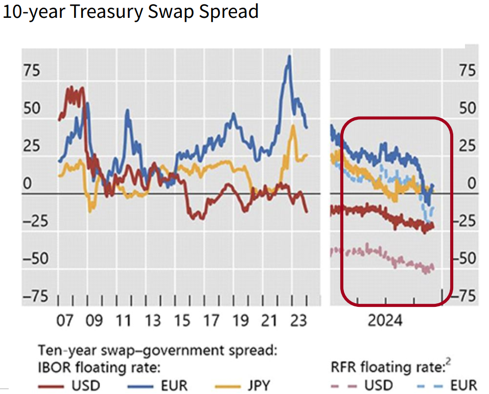 Figure 2: The emergence of negative swap spreads indicates that Treasuries no longer consistently command a convenience premium.