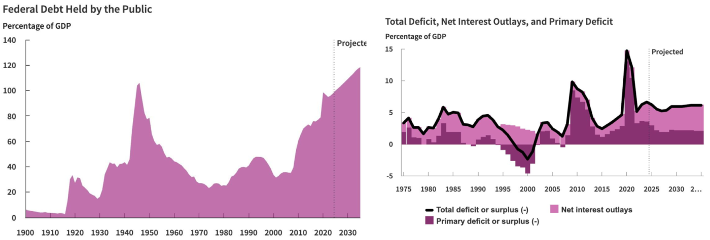 Figure 3: The unsustainable fiscal trajectory of the United States, with debt held by the public projected to rise significantly.